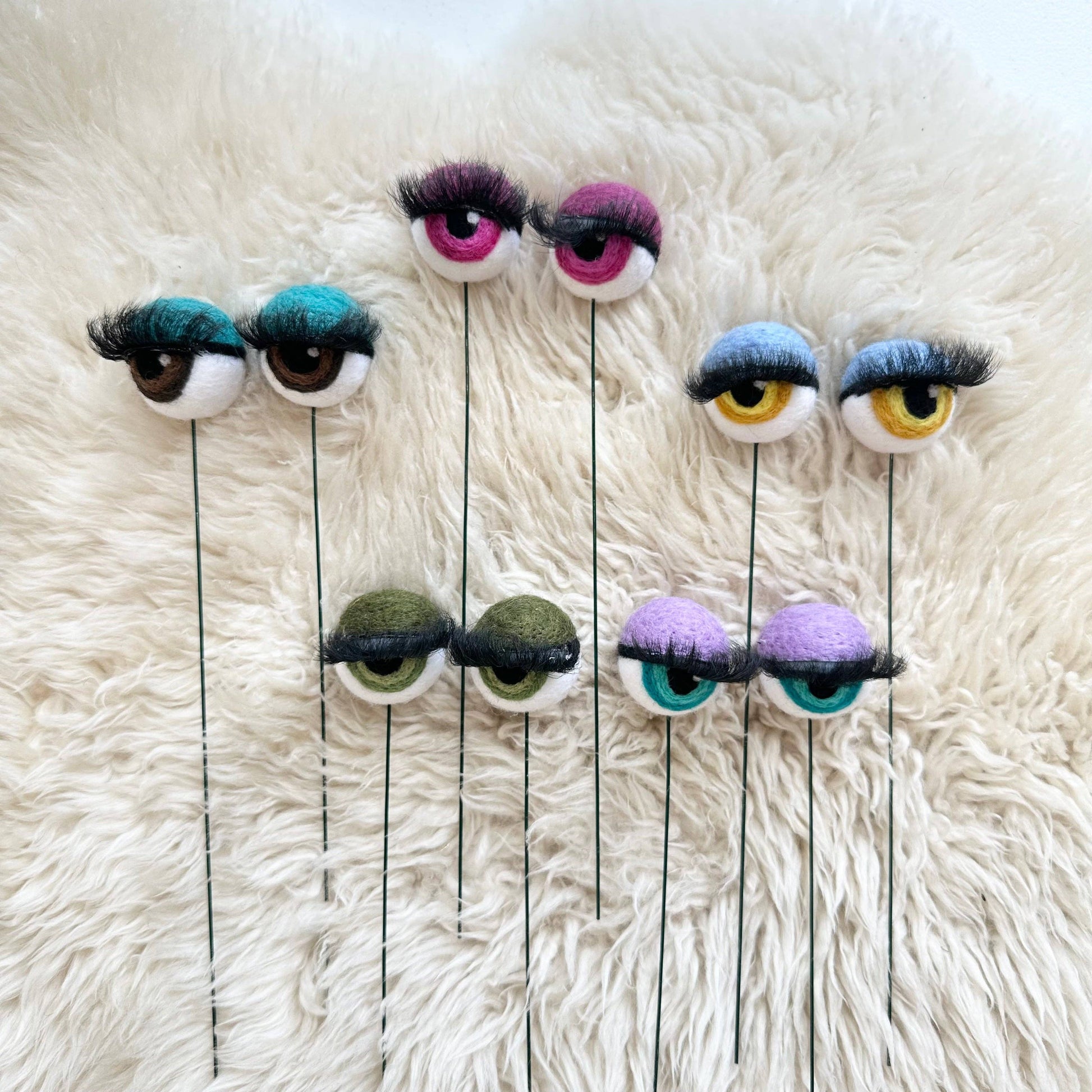 Each hand-felted eyeball is made from 100% New Zealand wool and securely fastened to a 9-inch, rust-proof floral wire. Felt pieces are handcrafted by fair trade artisans in Nepal and assembled and packaged with love in our New Jersey studio.