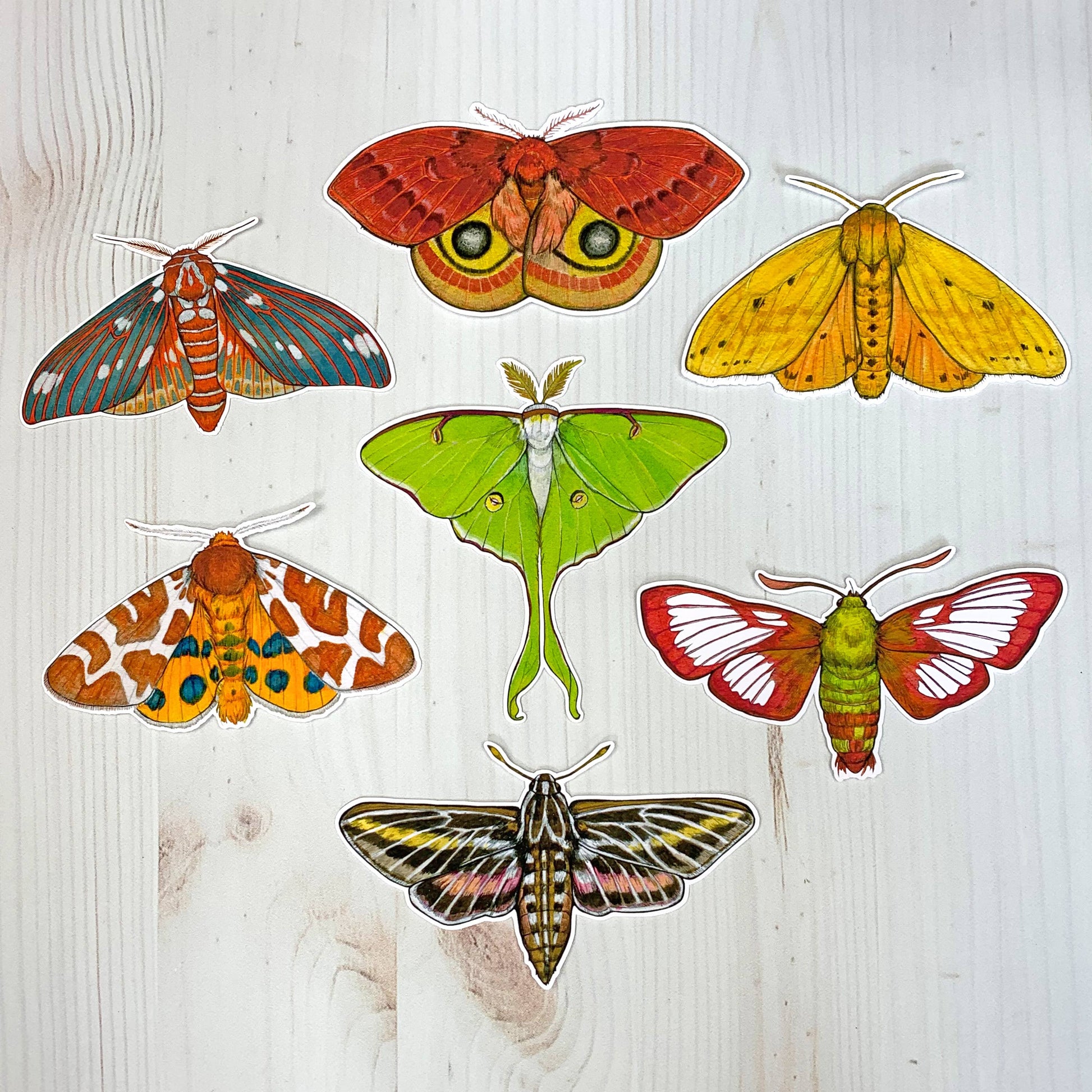 These luna moths would look great on a water bottle, hydroflask, travel mug, coffee tumbler, instrument case, luggage, or any other smooth surface.