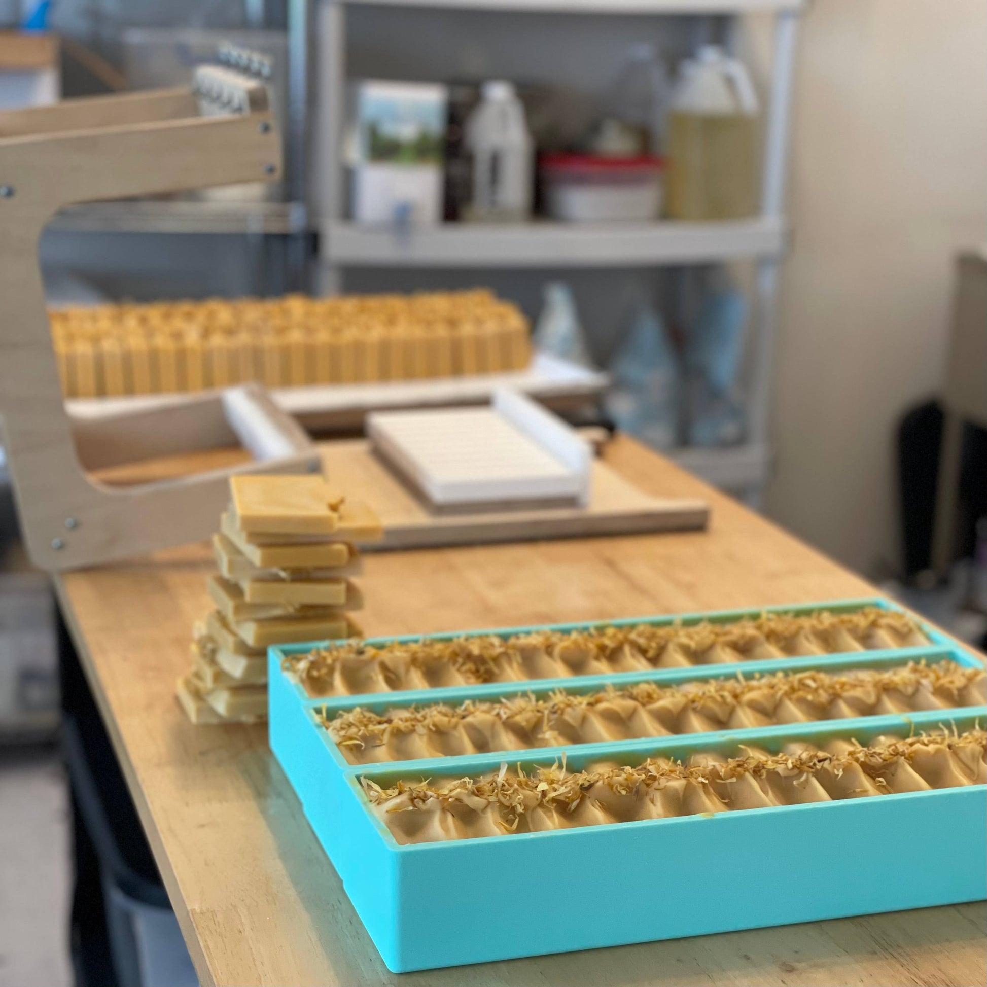 Color: Golden yellow swirl from an infusion of sooting Annatto seeds. Topped with yellow calendula petals.