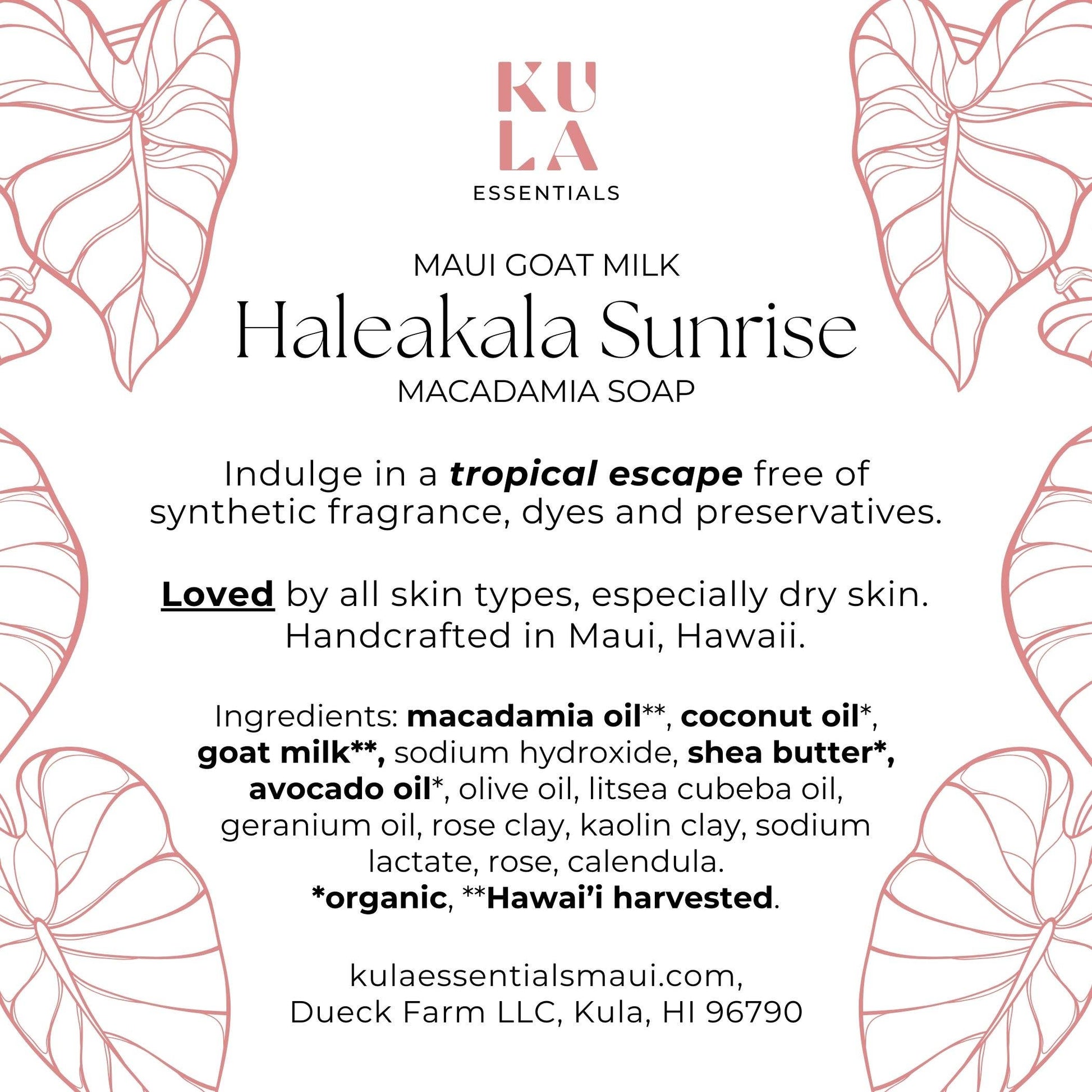 Key ingredients: Nourishing Maui goat milk and Hawai'i harvested macadamia oil. Why macadamia? Its unique profile and perfect balance calms and supports your skin barrier, essential for healthy, youthful skin.