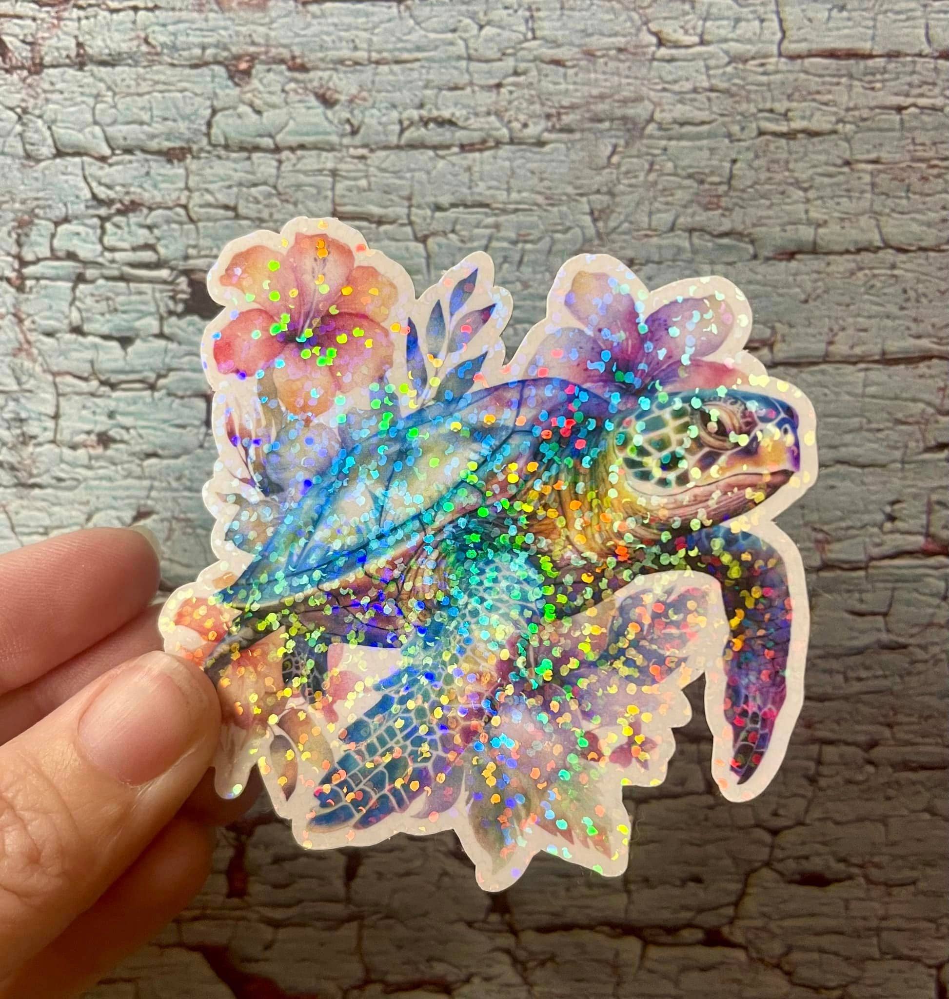 Sea Turtle Watercolor Die Cut Vinyl Sticker: Little dots holo / Loose/unpackaged